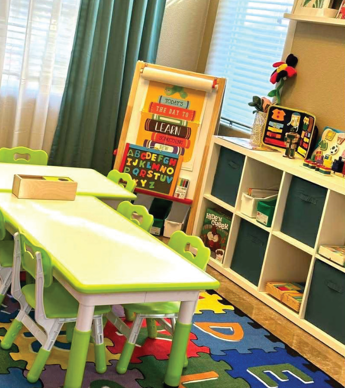 Для домашнего детского сада важно учитывать множество факторов. В первую очередь — локацию: тихий и спокойный район, где дети будут в безопасности, а родители смогут удобно подъехать и быстро выехать на основные дороги. Нам было важно, чтобы возле дома хватало места для парковки или хотя бы короткой остановки, поэтому мы искали дом в корте, на спокойной улице. Не менее значима была планировка: большая гостиная или отдельная комната для игровой и учебной зоны, просторная спальня для дневного сна детей и возможность обустроить детский туалет — все это было огромным преимуществом. Мы мечтали о доме с большим задним двором, где можно оборудовать безопасную игровую зону, ведь детям нужно много времени проводить на свежем воздухе, резвиться, играть.